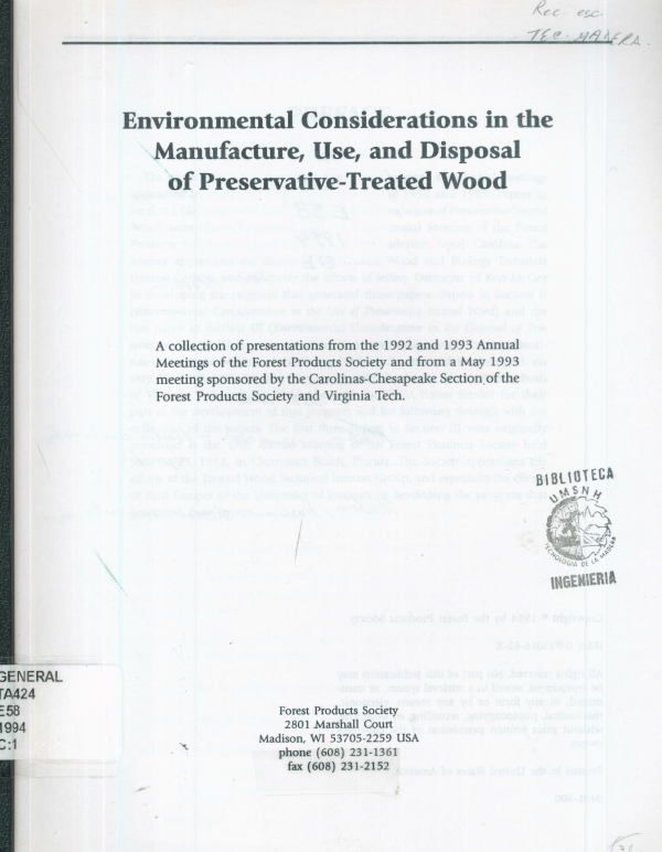 Publication details: Madison, WI. : Forest Product Society, 1997