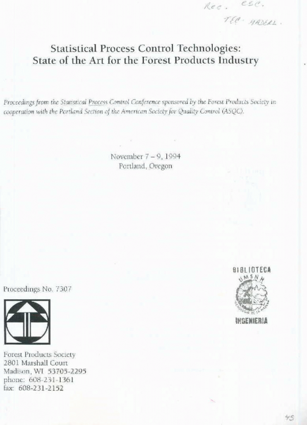 Publication details: Madison, WI. : Forest Products Society, 1995